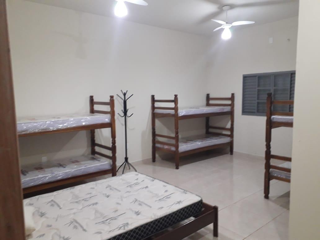 Chácara toda em alvenaria com 4 amplas suítes, 3 wc social, sala, cozinha, varanda com churrasqueira e fogão a lenha. Área de lazer composta por 2 piscinas, estacionamento para diversos carros e um vasto e agradável gramado, proporcionando uma impressão de paz e sossego para a sua estadia. Possui espaço para a possibuilidade de inclusão de mais leitos para grupos maiores de pessoas, logo, um ambiente ideal para eventos de grande porte.